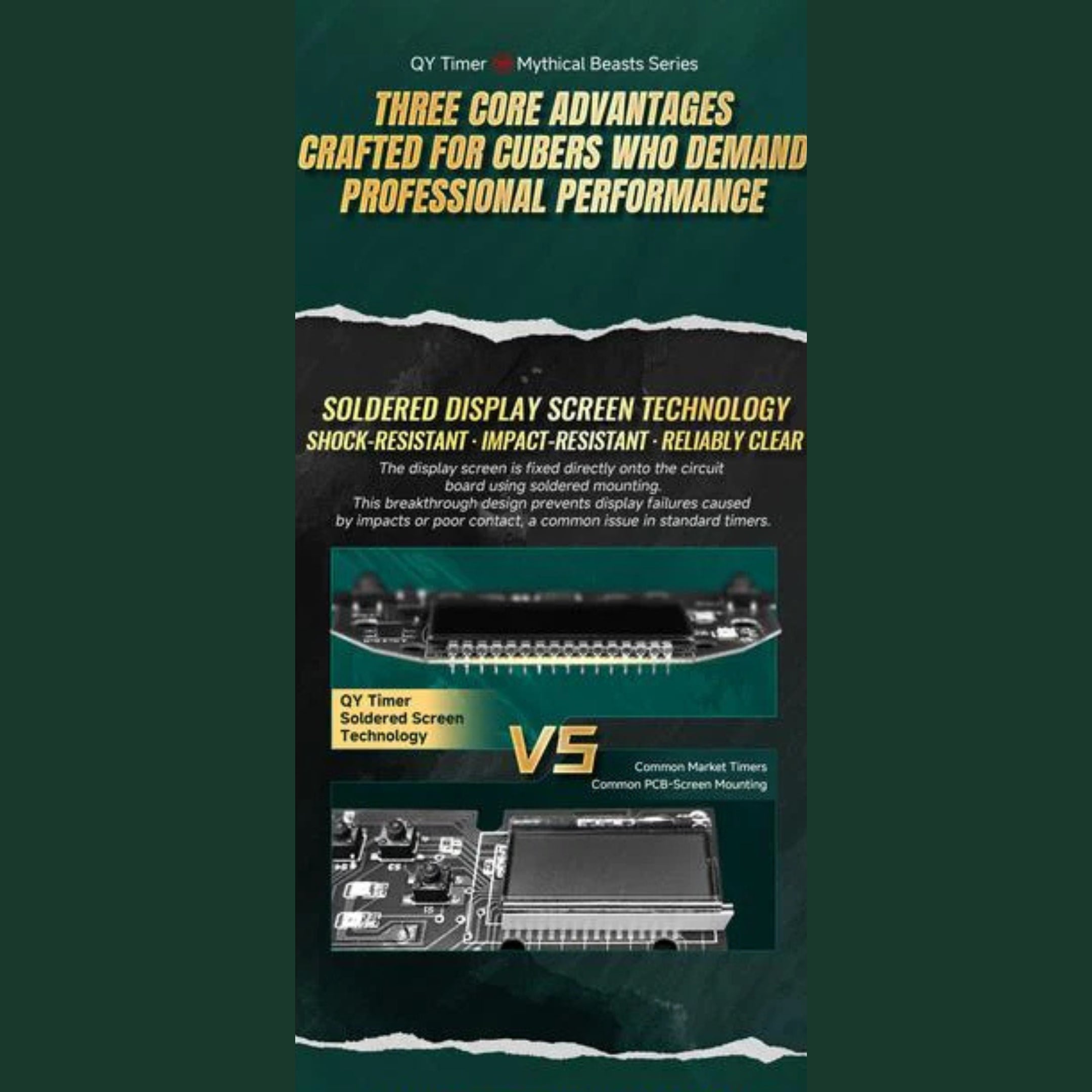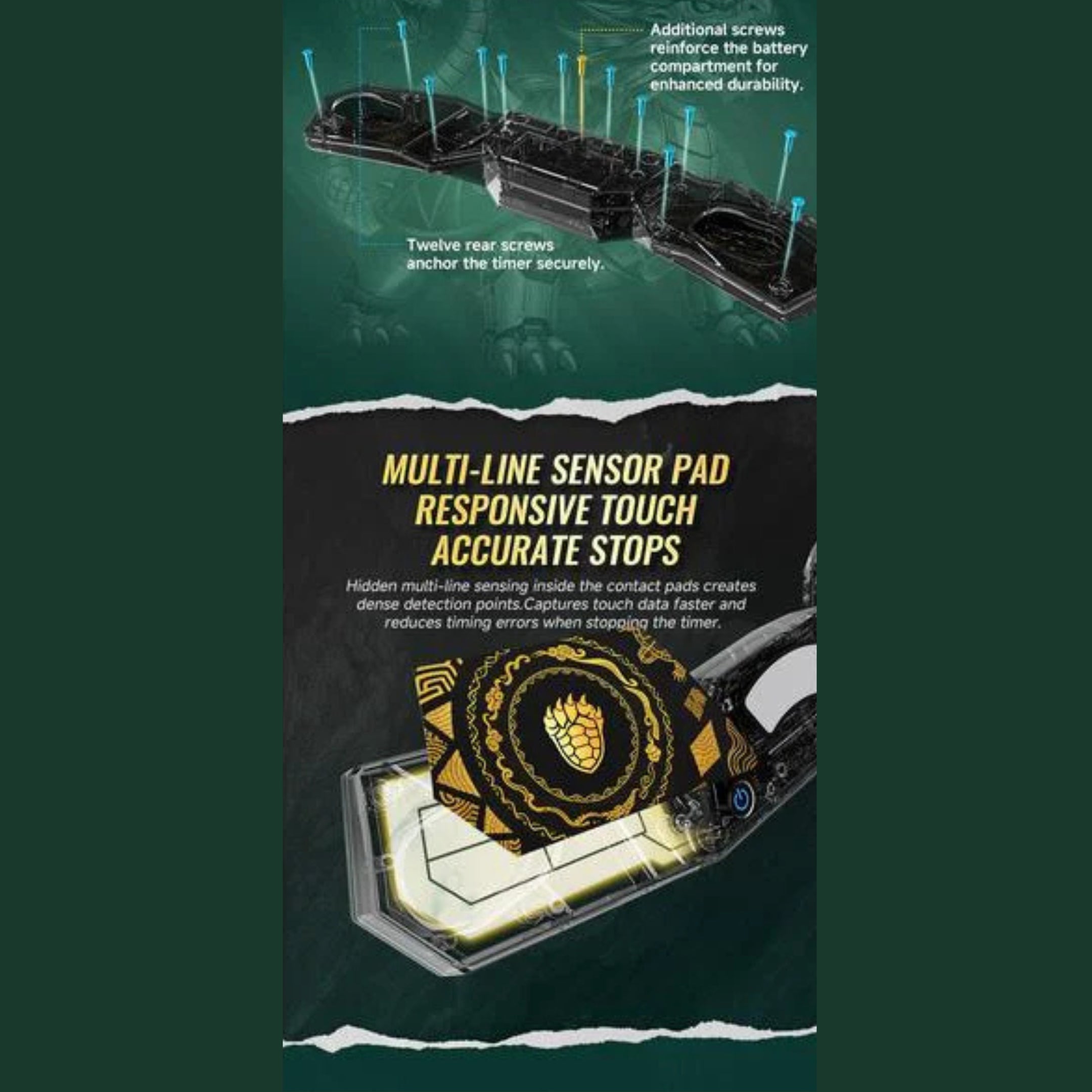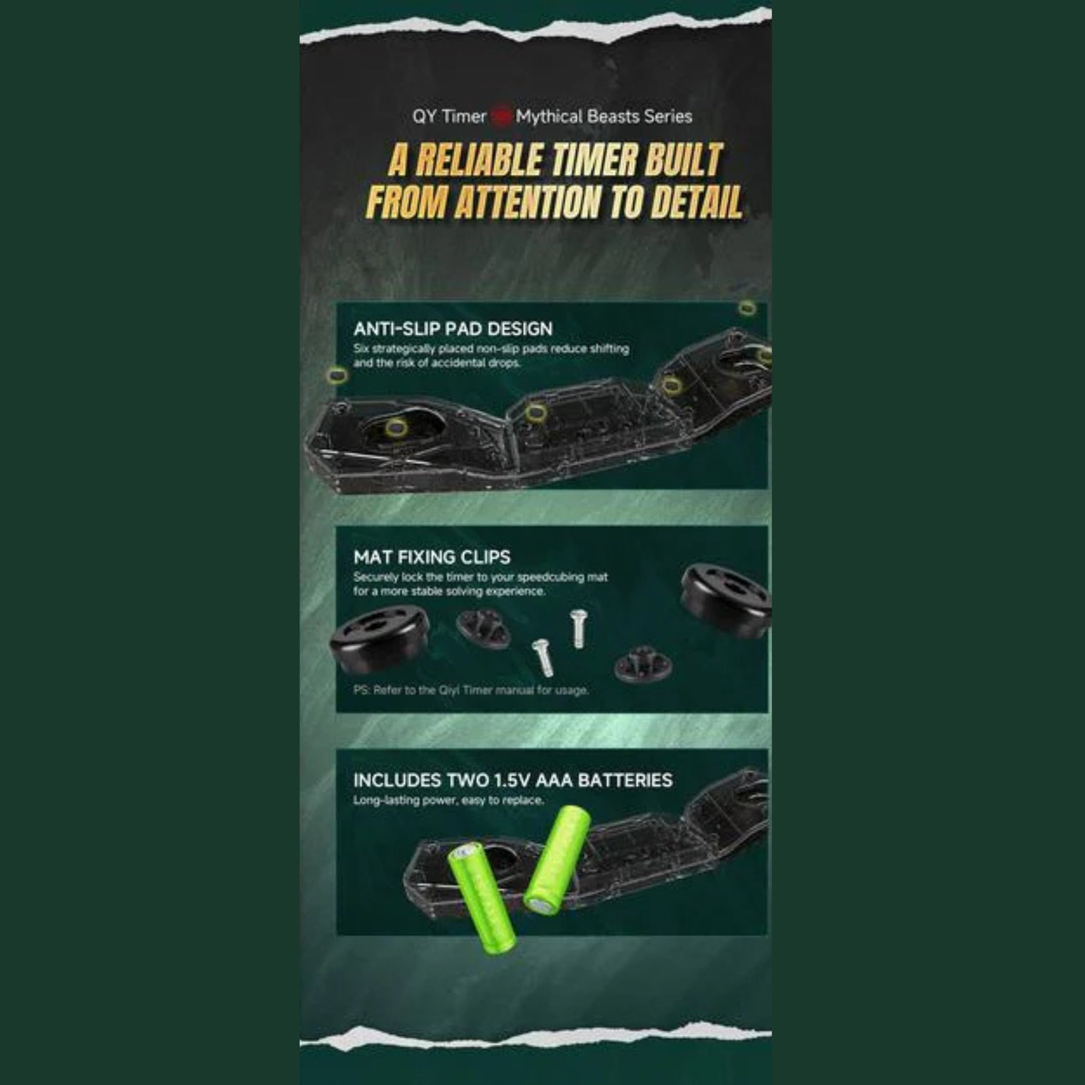 QiYi Timer XuanWu is a competition-style speedcubing timer built for accuracy, stability, and long-term reliability. Finished in a premium black-and-gold design, it delivers precise timing up to 9:59.999, responsive hand detection through multi-line sensor pads, and a rock-solid table setup thanks to anti-slip pads and mat-fixing clips. Whether you’re training at home or setting up a practice station, the XuanWu is designed to keep up with fast solves—and it’s expandable with optional Bluetooth connectivity when you’re ready to go smart.