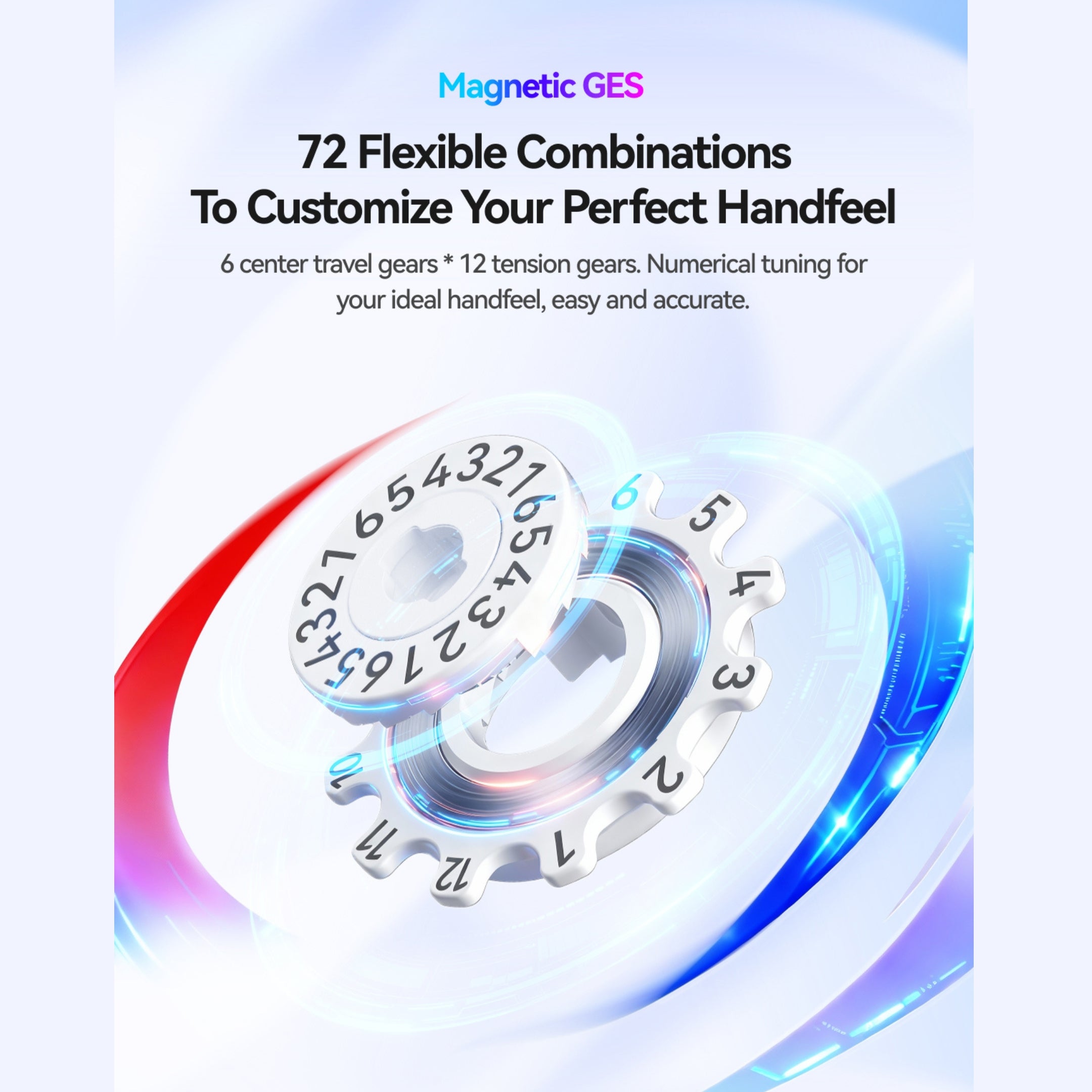 • 72 customizable feel settings (6-speed wheelbase & 12 elastic adjustments)