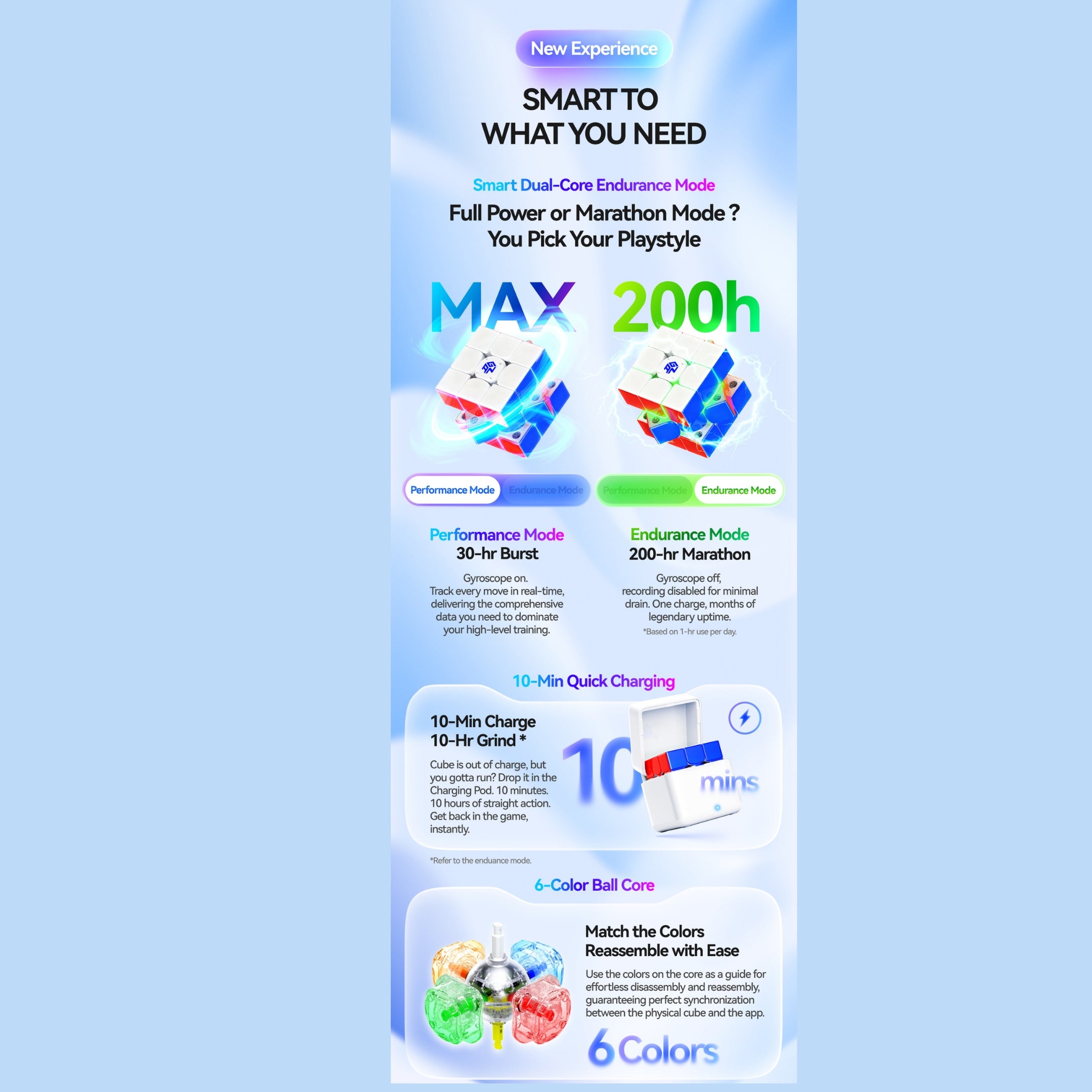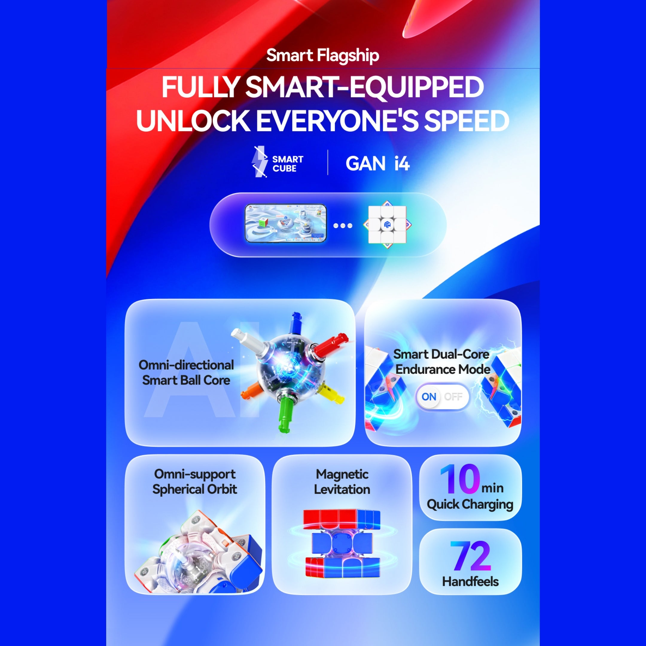 The GANi4 Smart Cube is a high-performance smart cube built for cubers of all levels. It combines smooth mechanical design with advanced smart tracking technology, offering customizable feel, stable performance, and accurate data recording. With its compact 55mm size and fast-charging capability, it is ideal for both daily practice and competitive training.